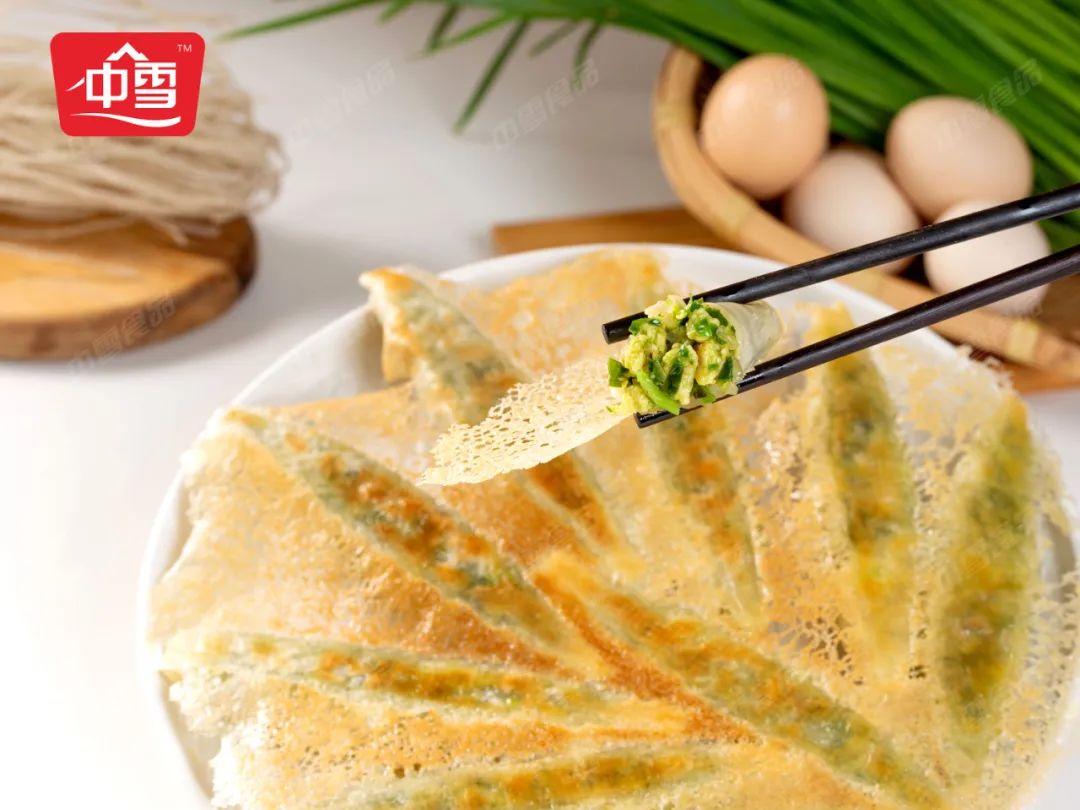 中雪60%的高餡含量,帶來了與傳統鍋貼截然不同的體驗。咬開時能感受到餡料的飽滿充盈,韭菜的脆嫩與雞蛋的綿密層次分明,牛肉餡則清爽不膩,全無 “皮多肉少” 的空洞感。這種 “每口都有餡” 的扎實體驗,讓消費者直觀感受到差異——不再是被面皮裹挾的零星餡料,而是餡料主導的豐富口感。